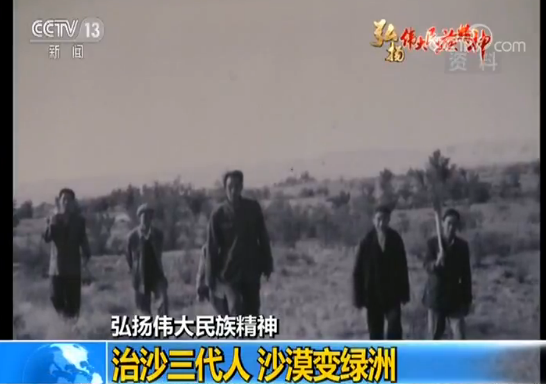 张润源:刚开始治沙我们还有些犹豫,想着沙漠里不浇水还能把树栽活吗?81年秋季第一年治的时候,治了一万亩,成活率本来的能达到百分之七十,被风沙一打,百分之三十都不到了。