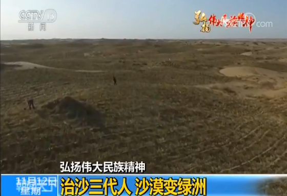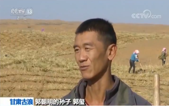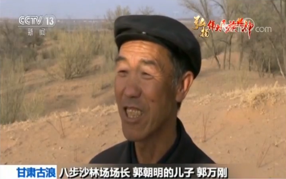郭老汉的孙子 郭玺:老一代人已经使古浪县的沙漠整体向后推移了15到20公里,现在接力棒到了我们手里,我们要将终身奉献给八步沙,使山更绿水更清,一代一代传承下去。