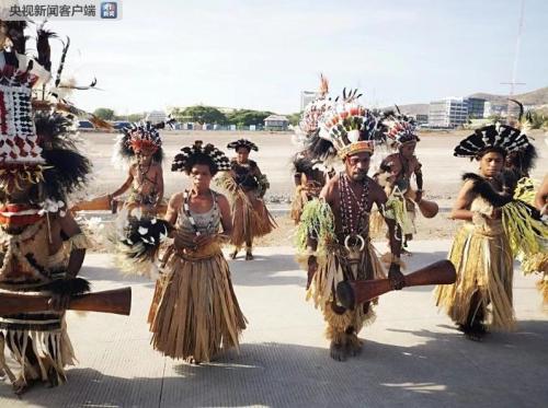 当地时间13日,在南太平洋的巴布亚新几内亚首都莫尔兹比港,一些主要街道上纷纷挂起了中国国旗,可以看到许多当地民众身穿民族服饰,排练迎宾舞蹈,准备欢迎即将到访的中国国家主席习近平。