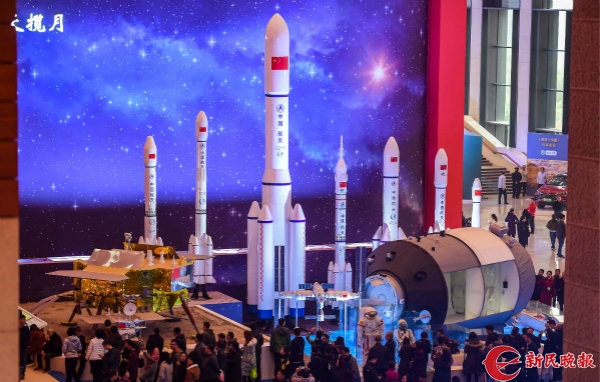 图说:中国航天技术集中展示区域。新民晚报记者 孙中钦 摄