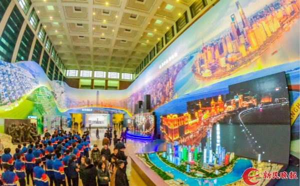 图说:上海展区的视频和沙盘展示着建设成就。新民晚报记者 孙中钦 摄