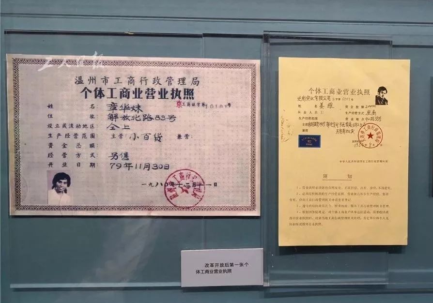 ↑改革开放之后第一张个体工商业营业执照。