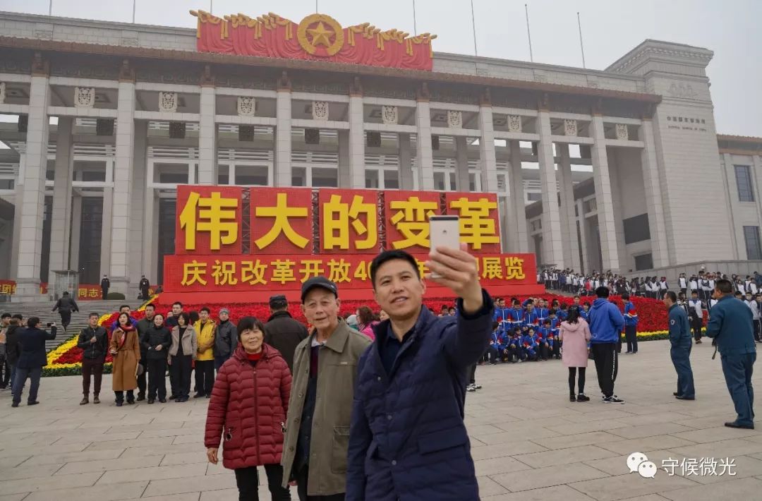 11月14日上午,中国国家博物馆外,正在自拍留念的观众。当日,“伟大的变革——庆祝改革开放40周年大型展览”正式对公众开放。