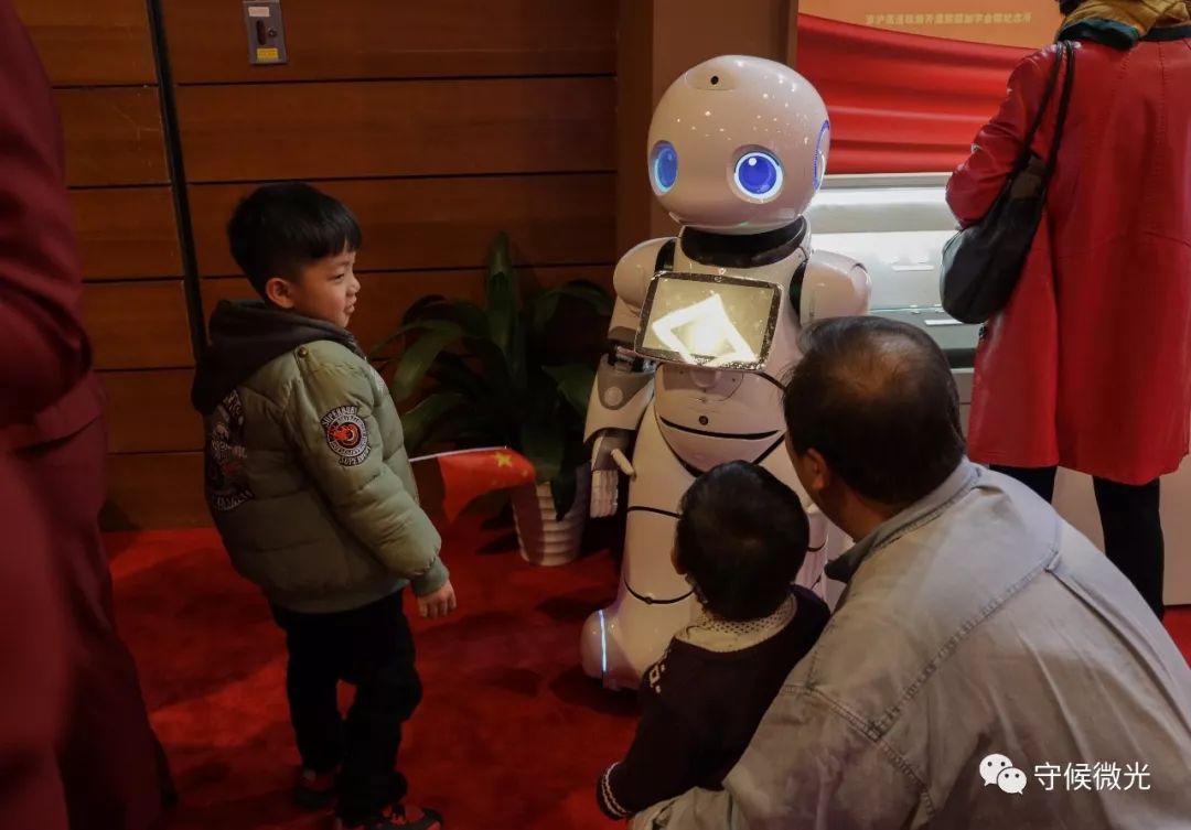展厅入口处,新型互动机器人吸引了不少儿童的目光。