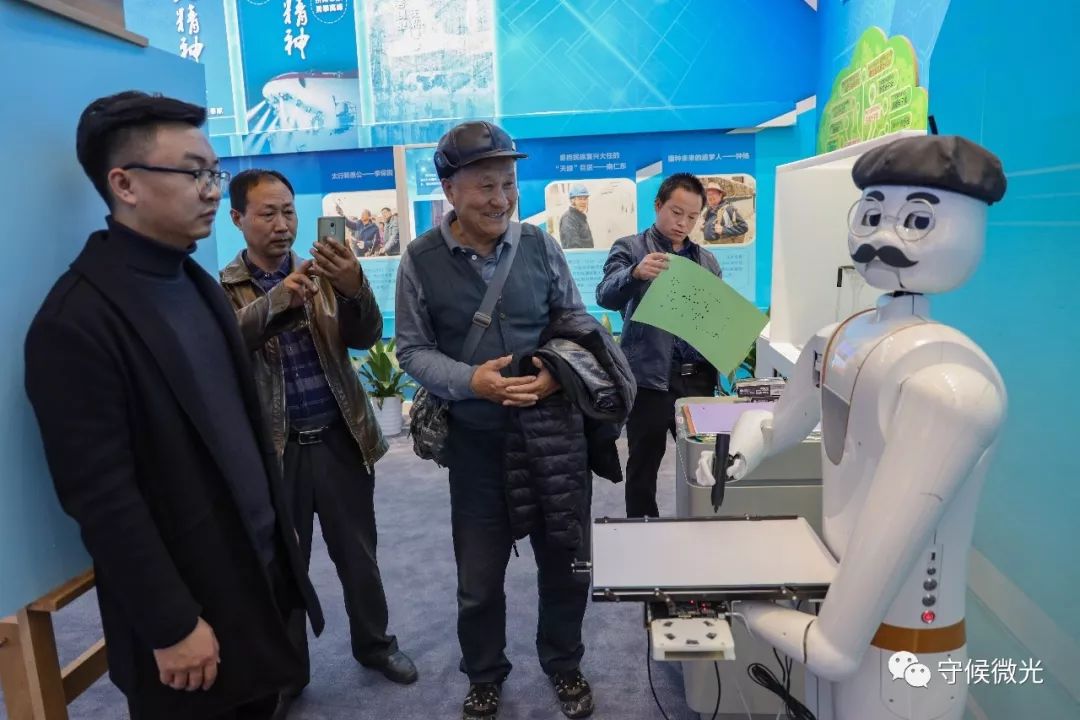 在第五展区“大国气象”中,智能画像机器人正在为观众画像。