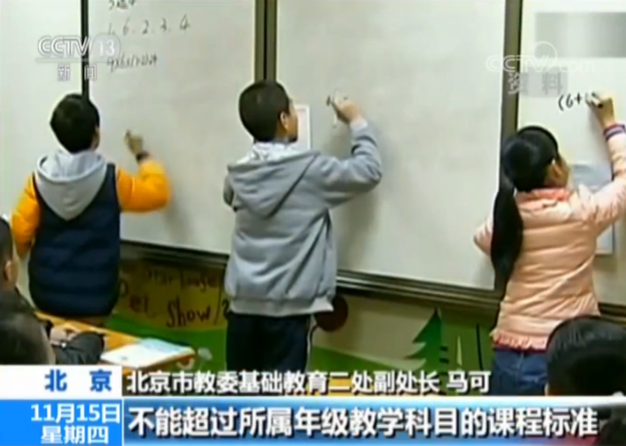 北京市教委基础教育二处副处长 马可:不能超过参训对象所在区县、所处学校年级的教学进度,不能超过所属年级教学科目的课程标准。对于培训机构的班级名称也要进行规范,比如说小学三年级数学培训班,这样可以便于双方进行筛选,比如二年级的学生上三年级的培训班这就是不可以的,从命名上首先进行规范。