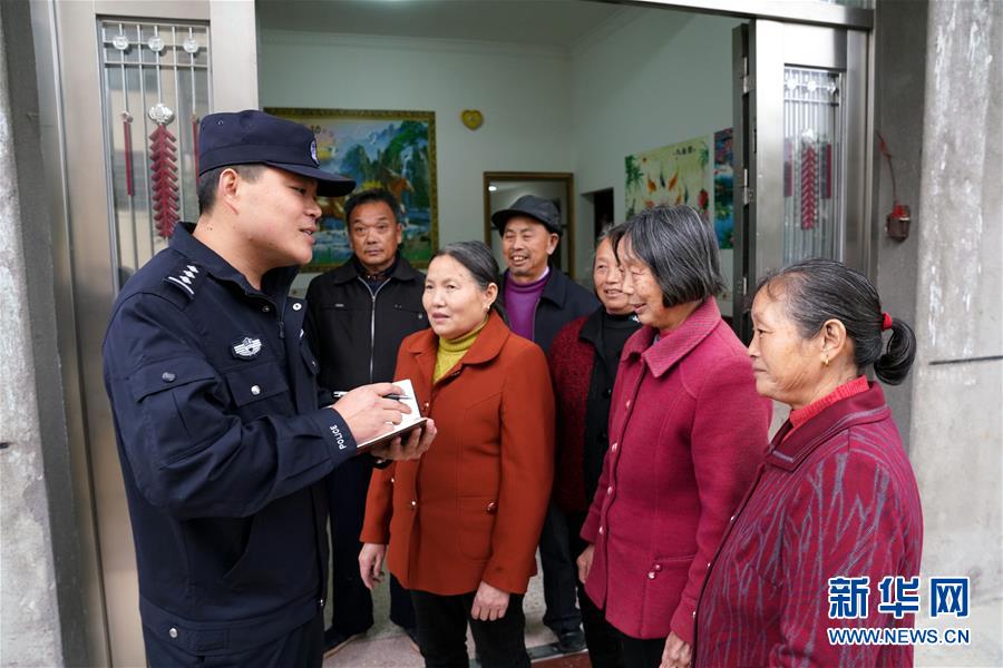 11月15日,75岁的陈友良(左)和63岁的刘祈敏在安义县东阳镇枫树自然村治安巡逻。