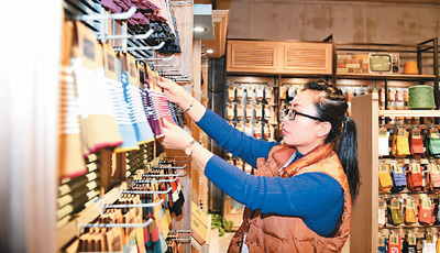 吉林省辽源市坚持放手发展民营经济,走出了特色鲜明的发展之路。图为在辽源市东北袜业纺织工业园的一家袜企内,工作人员整理展示样品。