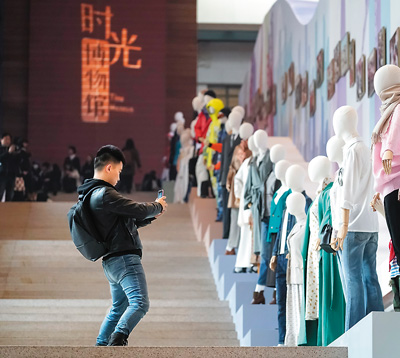 观众在“伟大的变革——庆祝改革开放40周年大型展览”上对展示着装的相关陈设拍照留念。