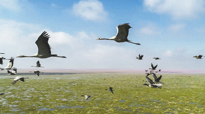 江西鄱阳湖是国际重要湿地、亚洲最大的越冬候鸟栖息地,被誉为“候鸟天堂”,每年占世界总数95%以上的白鹤、50%的白枕鹤、60%的鸿雁都在此越冬。