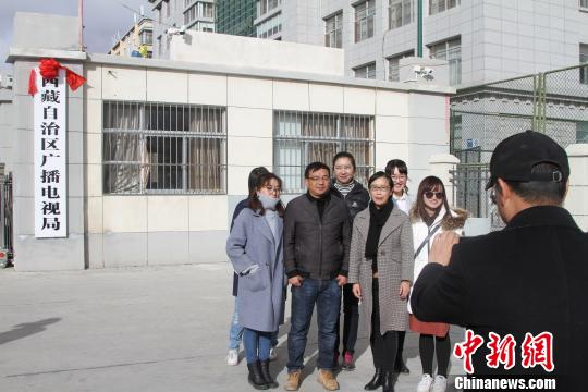 图为11月17日,西藏自治区广播电视局揭牌仪式结束后,民众纷纷在新牌前合影留念。 张伟 摄