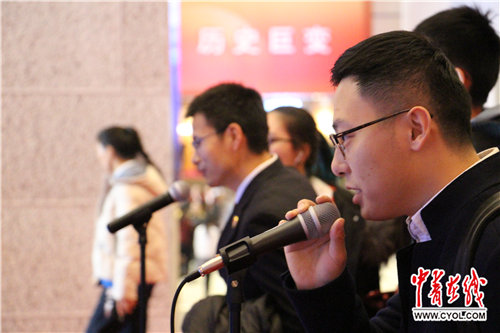 11月16日,国家博物馆内,前来参观“伟大的变革——庆祝改革开放40周年大型展览”的观众络绎不绝。在展区的留言处,33岁的张俊峰身着“只有最正式场合才穿”的中山装,笔直地站在一支话筒前,神色庄严。