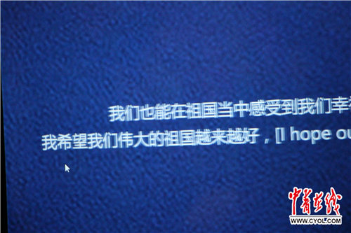 面对电子留言屏,张俊峰嘴角微抿,神情庄重,胸膛挺起,他说出心中的祝福:“祝愿我的祖国越来越强盛。”