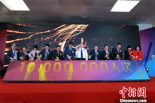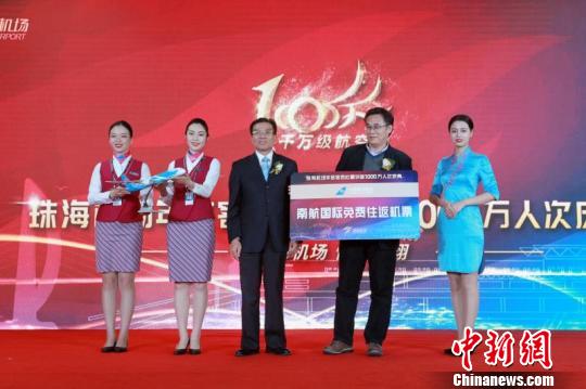 乘坐南方航空CZ3740航班的旅客刘先生成为了珠海机场的“第1000万名旅客” 陆绍龙 摄