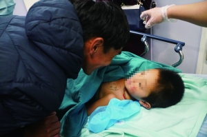 手术后,丁子扎西问儿子“疼不疼”。 孙健/摄