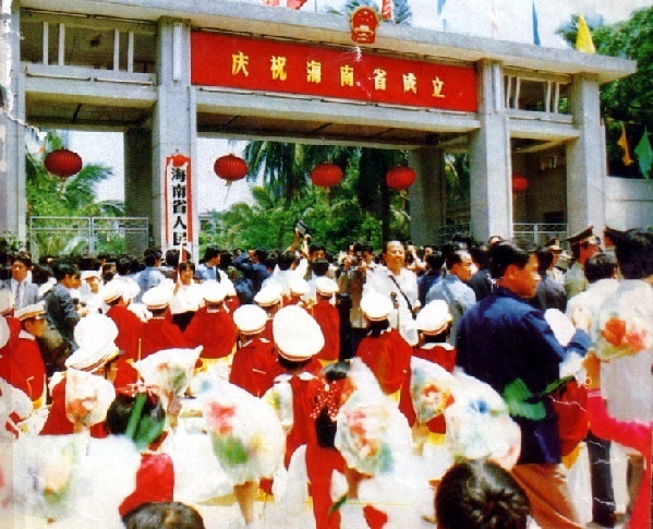 海南建省时喜庆的情景(1988年4月摄)。新华社发