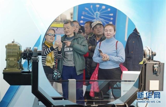 11月22日,观众观看大口径高精度非球面光学反射镜(1.5米口径)。 “伟大的变革——庆祝改革开放40周年大型展览”目前正在中国国家博物馆举行,展览上的各种科技创新展示与互动吸引众多参观者。 新华社记者 才扬 摄