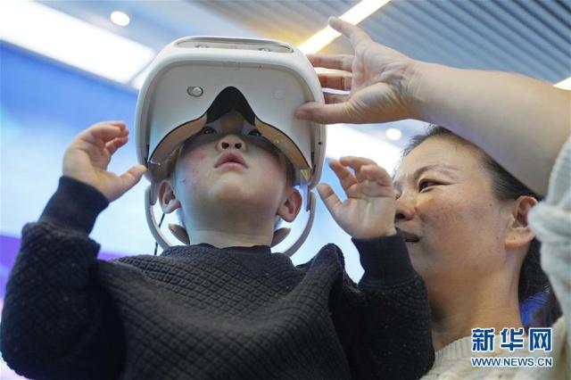 11月22日,一名小朋友体验“本色中国”VR项目。 “伟大的变革——庆祝改革开放40周年大型展览”目前正在中国国家博物馆举行,展览上的各种科技创新展示与互动吸引众多参观者。 新华社记者 才扬 摄