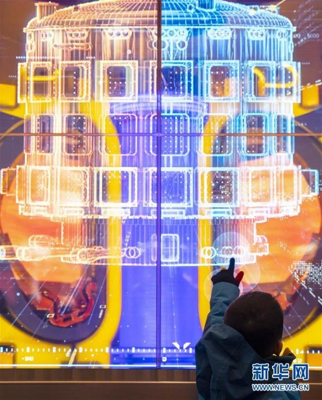 11月22日,一名小朋友观看国际热核聚变实验堆(ITER)模型。 “伟大的变革——庆祝改革开放40周年大型展览”目前正在中国国家博物馆举行,展览上的各种科技创新展示与互动吸引众多参观者。 新华社记者 才扬 摄
