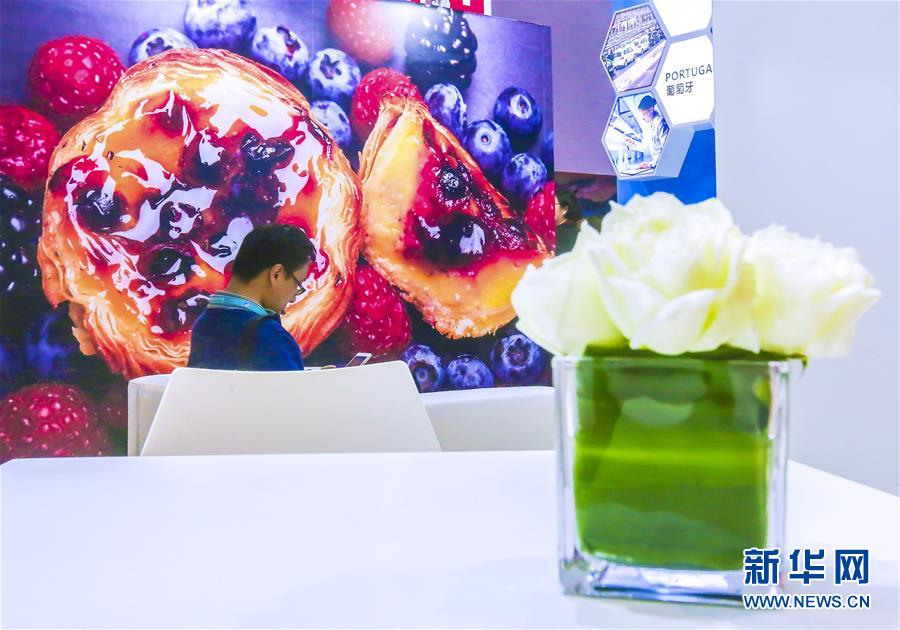 2018年11月6日,在中国上海,一位男士坐在中国国际进口博览会的葡萄牙展区内。新华社记者 殷刚 摄