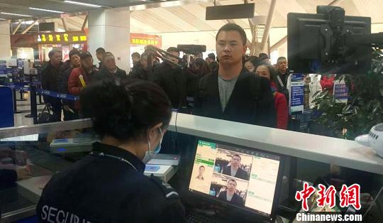 图为当日机场工作人员为旅客办理登机。 贾振徽 摄