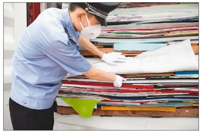 图为八月二十七日,上海海关缉私警察在外高桥港区查获走私废塑料。