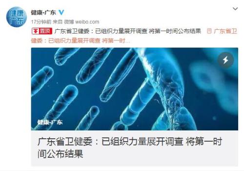 广东省卫健委表示,高度关注此事件,已组织力量展开调查,并将及时向社会公布调查结果。
