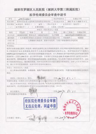 中国临床试验注册中心网站发布的相关医学伦理委员会审查申请书显示,上述研究由深圳大学附属第三医院(罗湖区人民医院)医学伦理委员会批准。