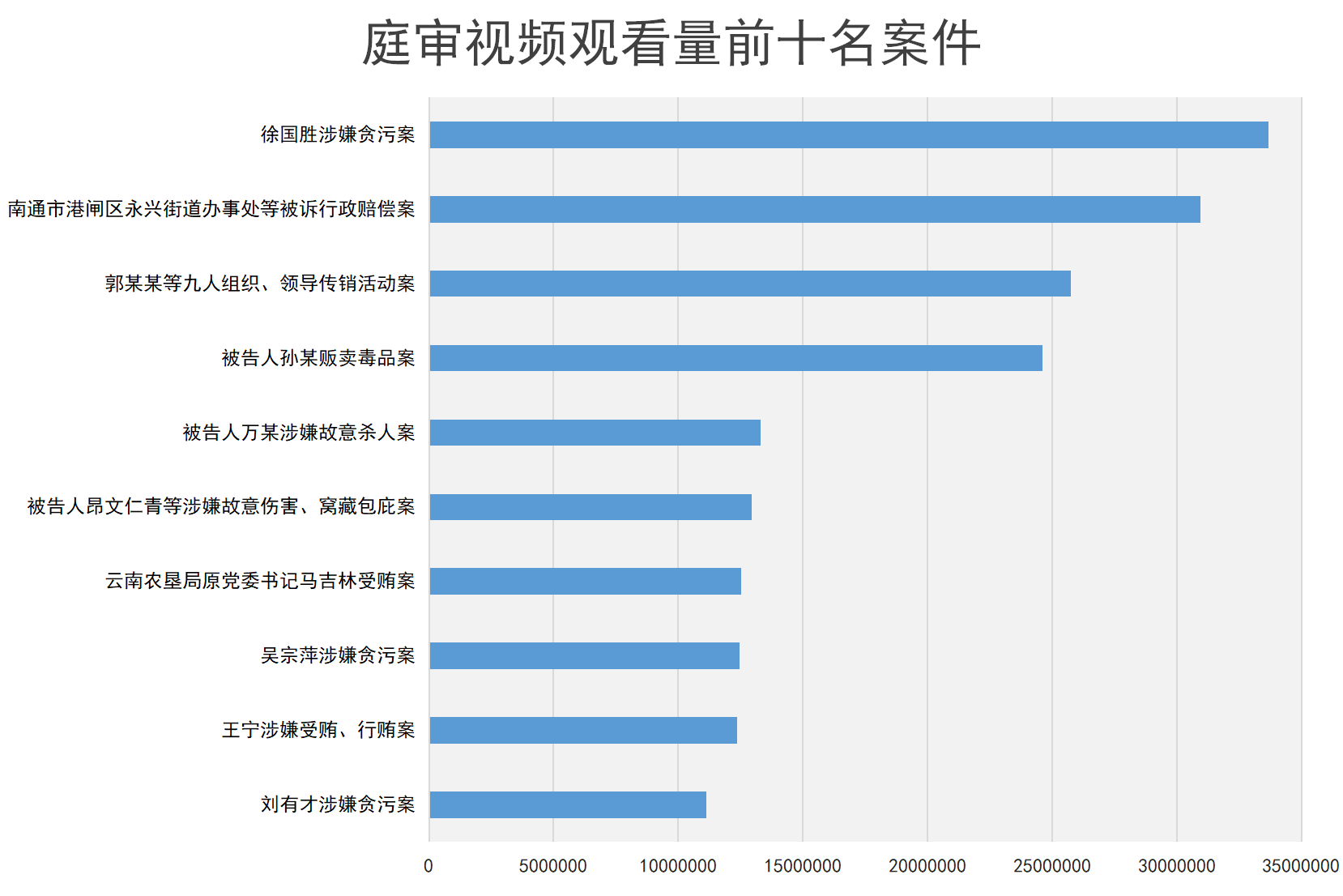 表4 最高人民法院庭审直播观看量排名前20(单位:人次)