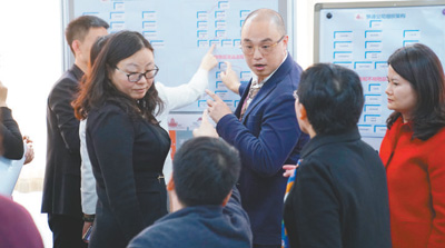 在李希贵校长工作室,学员积极探讨组织结构变革方案,在碰撞中提升。