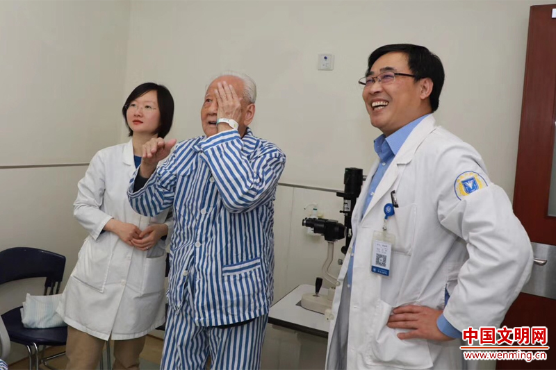 2018年初,姚玉峰为93岁的“中国核潜艇之父”黄旭华进行白内障手术,使其双眼视力均恢复到0.6。图片由姚玉峰提供
