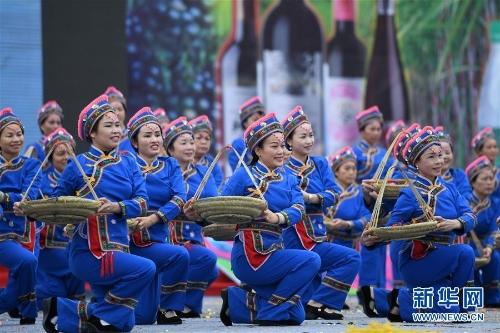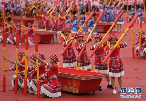 在广西罗城仫佬族自治县,当地群众在仫佬族传统节日依饭节上表演节目(2017年11月7日摄)。新华社记者 陆波岸 摄