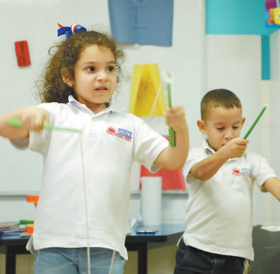 巴拿马国际文化学校学前班的孩子正在抖空竹。