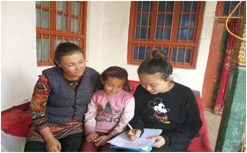 学生迪丽热巴的家很远,离学校有五公里而且路不好走,她特别希望老师能去自己家里做一次家访,我便答应了。还没到她家门口,远远就看到一个小身影在路口等我们,没等我们进门,迪丽热巴的妈妈就赶紧招呼我们洗手、喝茶、吃核桃。我送给了迪丽热巴一盒漂亮的水彩笔,希望她可以画出自己最美的梦想。小姑娘开心极了,一直说:“刘老师,我爱你,我很喜欢这个礼物,我一定会好好画画的。”至今我都忘不了小姑娘眼神里的那种兴奋与喜悦。通过家访,我可以真正和家长们沟通,了解他们的难处,也让他们了解党的教育惠民好政策,这样的走动拉近了我们彼此的距离,建立了亲如一家的感情。
