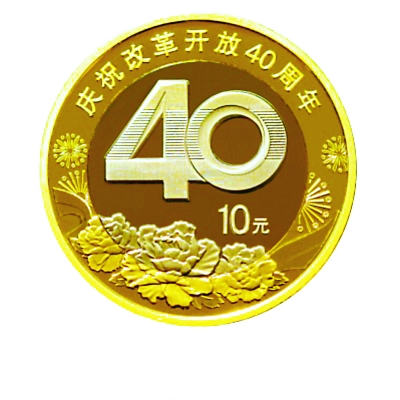 庆祝改革开放40周年双色铜合金纪念币面额为10元,直径为27毫米,材质为双金属铜合金,发行数量为1.8亿枚。双色铜合金纪念币与现行流通人民币职能相同,与同面额人民币等值流通。
