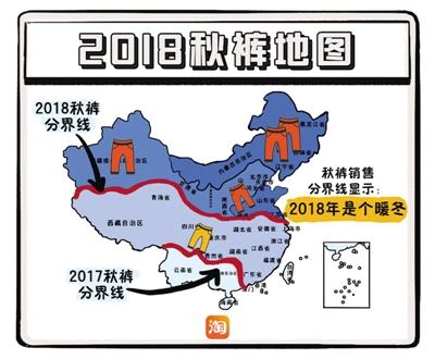 记者获悉,截至11月30日,淘宝上的秋裤成交订单所组成的分界线格外引人瞩目,几乎沿着长江横贯大中国。也就是说,一条“2018秋裤分割线”把中国的冬天“一劈两半”。