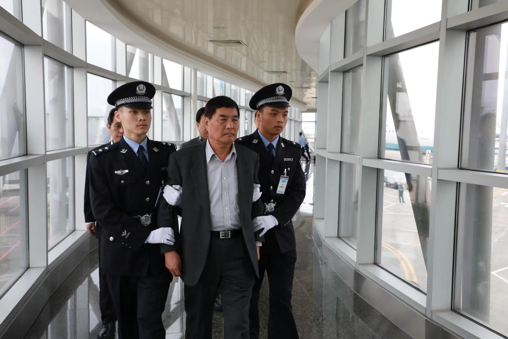 犯罪嫌疑人郑东强被押解下飞机(厦门市纪委监委 张威 摄)