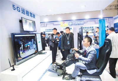 11月14日,在第十五届“中国光谷”国际光电子博览会上,观众在中国移动展区体验5G远程驾驶。新华社记者 熊 琦摄