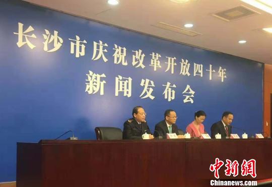 长沙市举行庆祝改革开放四十年新闻发布会。 唐小晴 摄