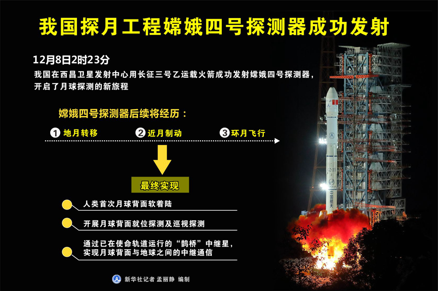 图表:我国探月工程嫦娥四号探测器成功发射 新华社记者 孟丽静 编制