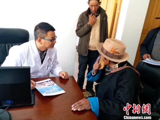图为黑龙江援藏医生周健伟在为患者检查口腔。受访单位供图