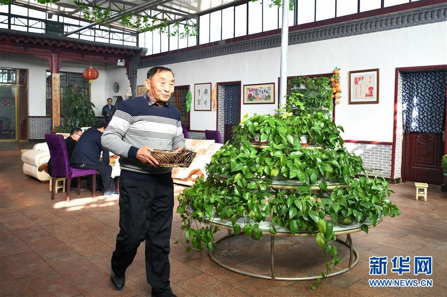 73岁的甘肃省敦煌市莫高镇甘家堡村村民吴兴科在自家的农家客栈里忙碌(11月28日摄)。新华社记者 陈斌 摄