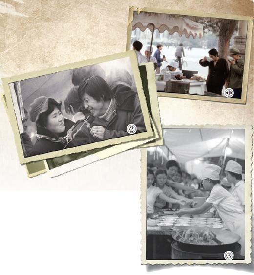 图②:1985年,北京地坛庙会上,市民在品尝羊肉串。人民视觉