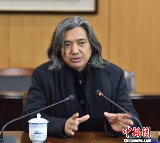 中国美术馆馆长吴为山讲述《国家公祭纪念碑——南京大屠杀组雕》创作过程。 侵华日军南京大屠杀遇难同胞纪念馆供图 摄