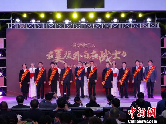 浙江省援外医疗工作先进集体和个人获颁荣誉奖章和锦旗。 张煜欢 摄