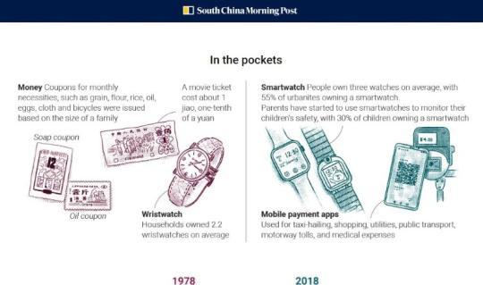 改革开放40年,中国老百姓日常用品的变迁。图片来源:《南华早报》网站截图