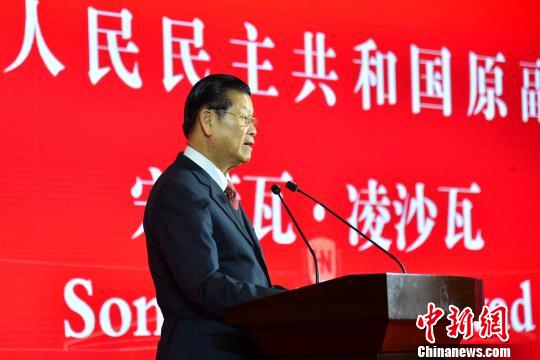 图为老挝前副总理宋沙瓦·凌沙瓦致辞。 洪坚鹏 摄