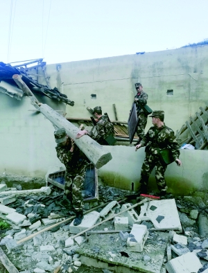 在兴文县周家镇龙洞村,救援人员在进行抢险救援工作。 新华社发