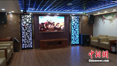远望7号上共有三个健身房,一个篮球馆,一个游泳池,一个KTV,和一个电影放映厅。图为可作KTV的娱乐室。 温孟馨 摄