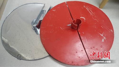 图为远望7号上配备的防鼠板,停靠时将它置于缆绳上,能让船只免受鼠患困扰。 温孟馨 摄